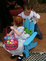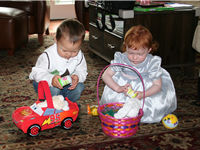 Chey. The kids had a blast finding Easter eggs in the backyard, Jordan with a
