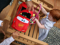 Lightning McQueen basket and Chey with a pretty pink & purple basket. After all