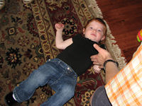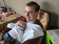 catching up on his nap, comfy & cozy in Dad Chris's arms. He was resting for his